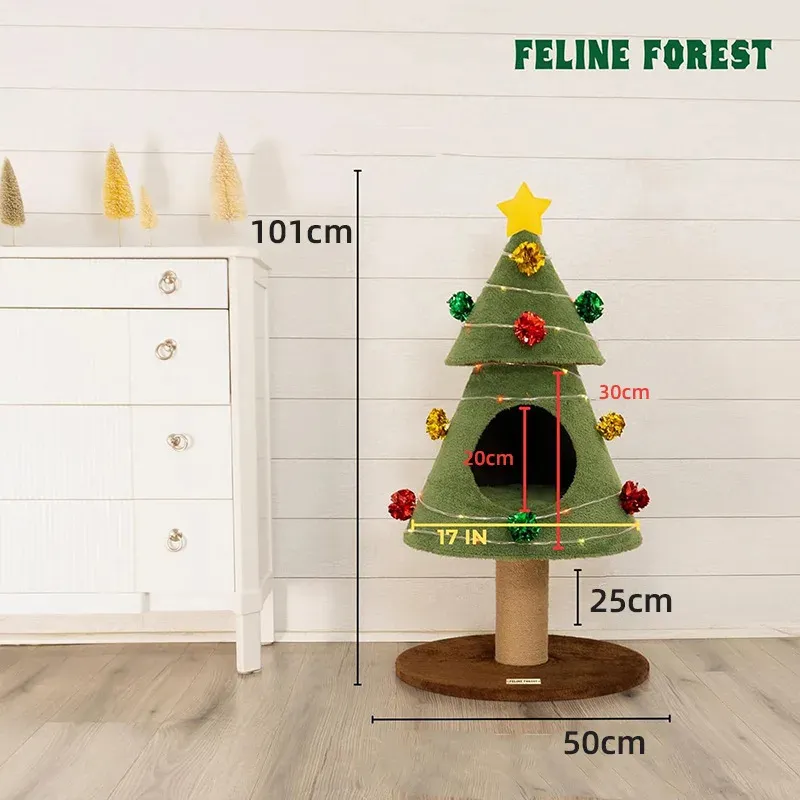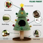 Celebrate the holidays with our unique Christmas Tree Cat Condo, specially designed for large cats! This charming and sturdy cat tree combines festive aesthetics with practical features, offering your feline friend the ultimate blend of play and relaxation. Its robust construction includes a durable sisal scratching post, satisfying your cat’s natural scratching instincts and protecting your furniture. The multi-level design features a cozy internal hideaway (cat condo) perfect for napping and a fun top platform crowned with a star, providing an elevated perch for observation. Adorned with colorful lights and pom-poms, this festive cat tree is not only a delightful holiday decoration but also a resilient and engaging play structure built to withstand enthusiastic scratching and climbing from even the biggest felines.